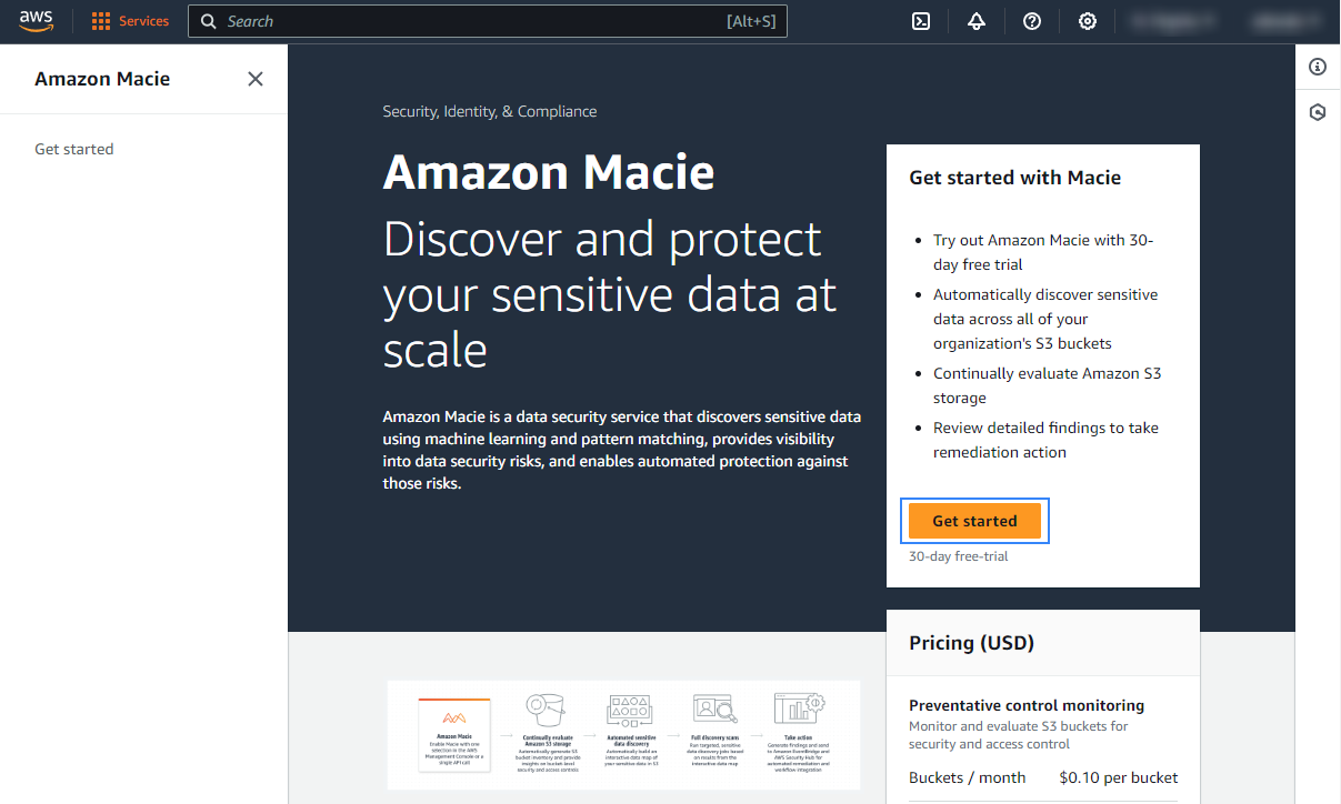 Once enabled, Macie provides visibility into data security risks and enables automated protection against those risks. Check the official AWS documentation to learn more about the service.