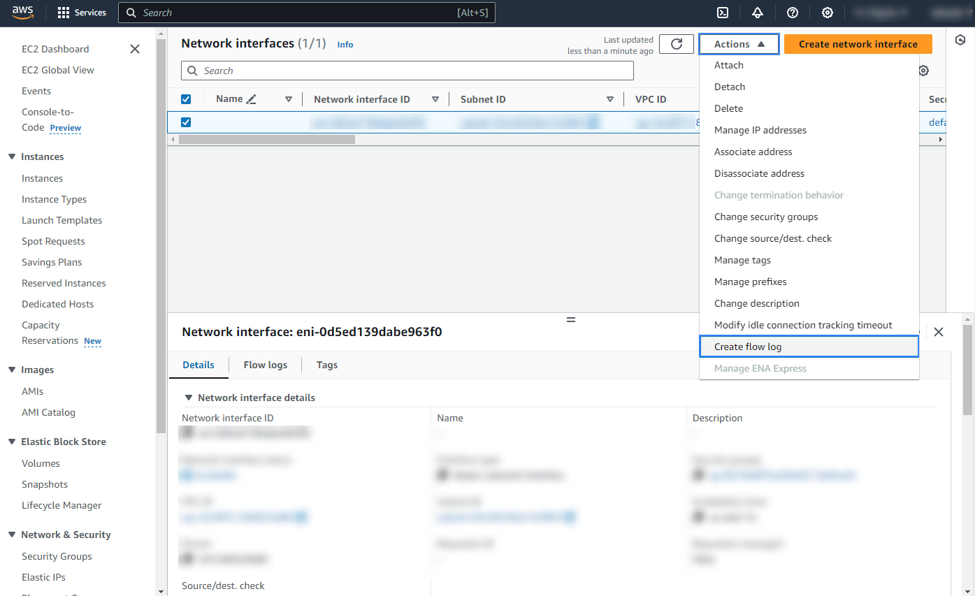 Go to Network & Security > Network Interfaces on the left menu. Select a network interface and select Create flow log on the Actions menu.