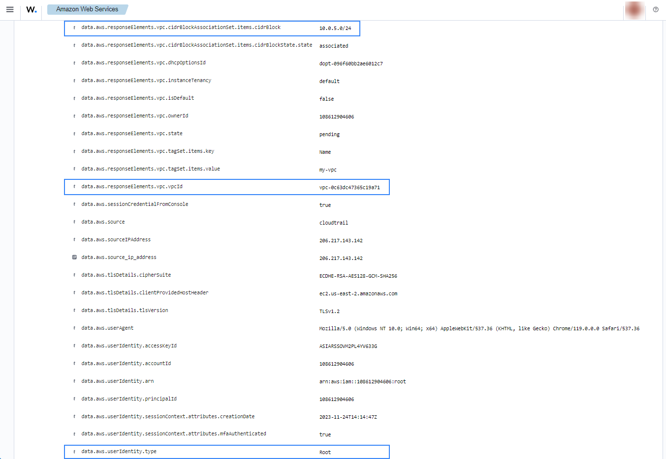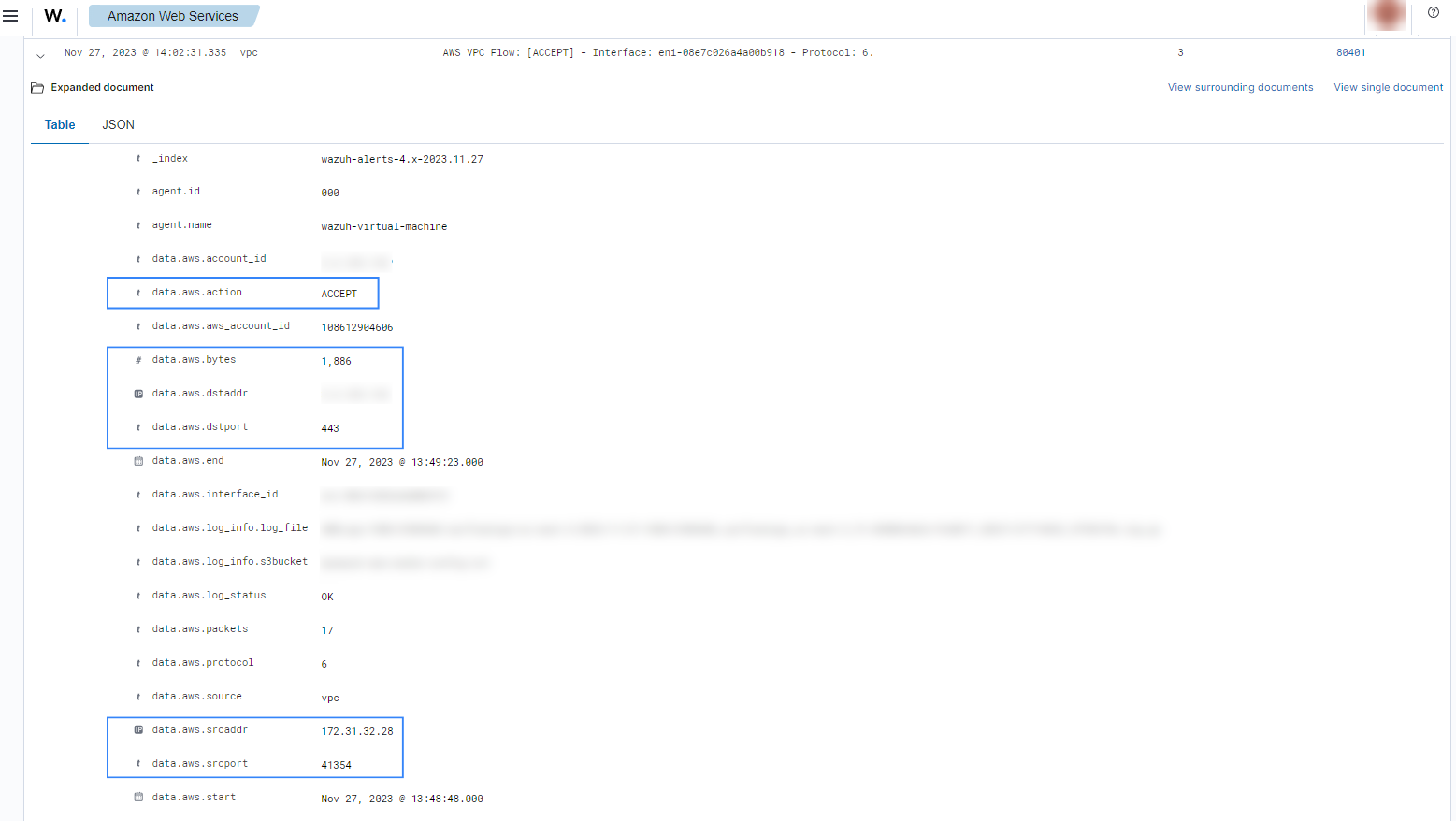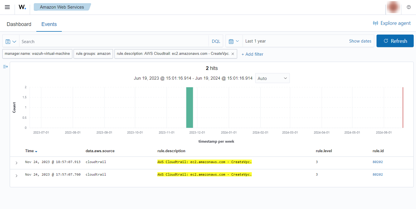 If a VPC is created, the following alerts with rule ID 80202 will be shown on the Wazuh dashboard.