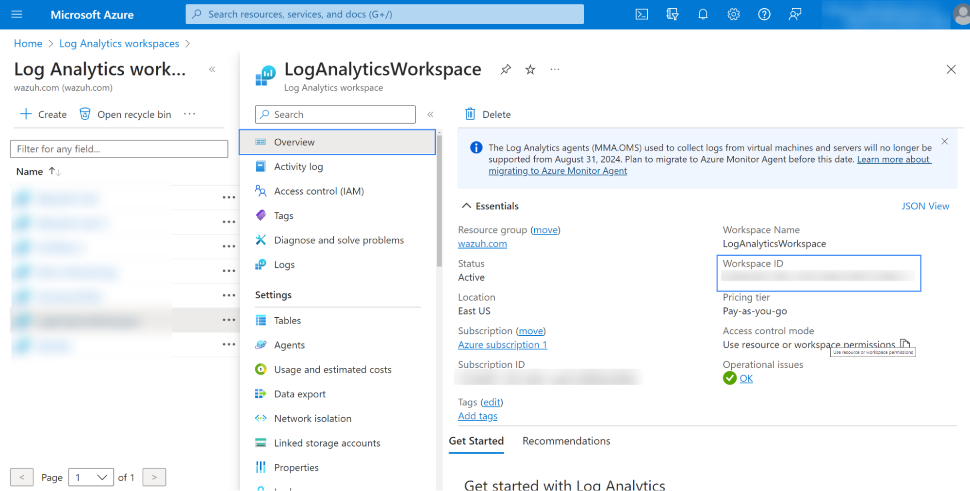 1. Access Log Analytics workspaces and create a new workspace or choose an existing one.