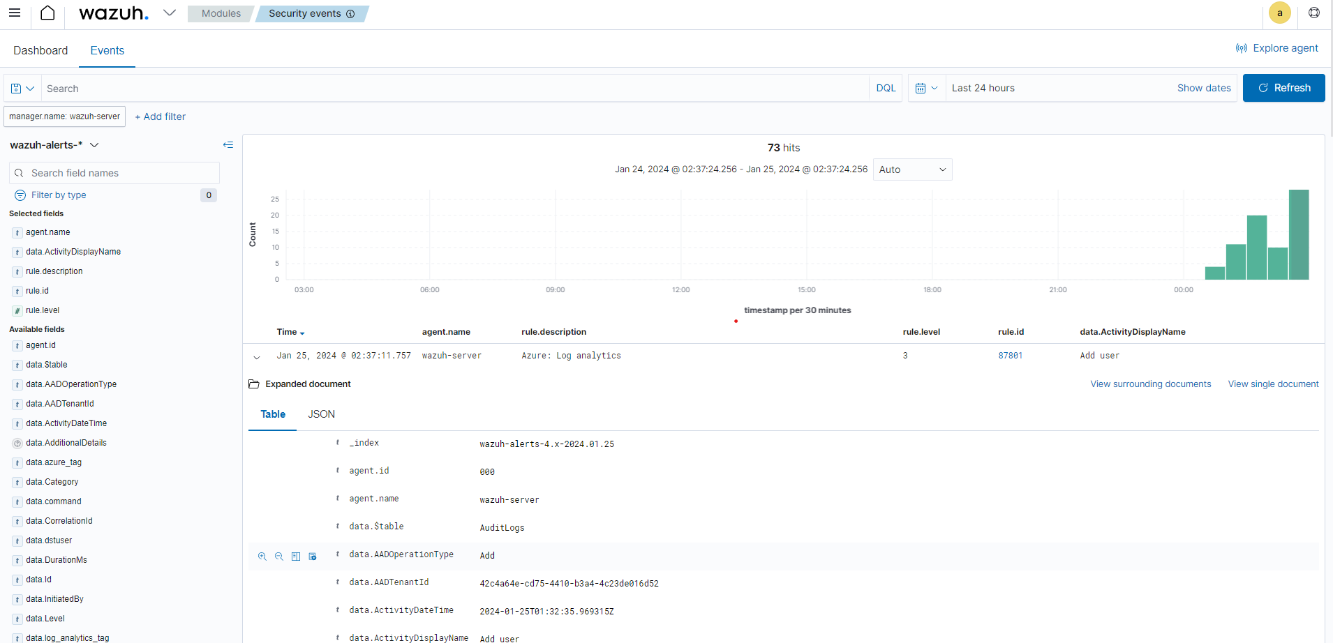 Visualizing the events on the Wazuh dashboard