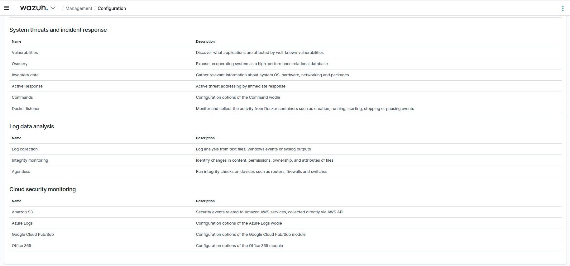 Version 4.3.0 enhances the performance of the Wazuh solution and adds new integrations such as the following: