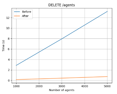 The RESTful API availability has been enhanced thanks to the API now using multiple processes. The performance of several API endpoints is also improved, which is especially palpable in large environments. Additionally, the agent batch is upgraded with an increased limit of agents per request and a new set of filters.