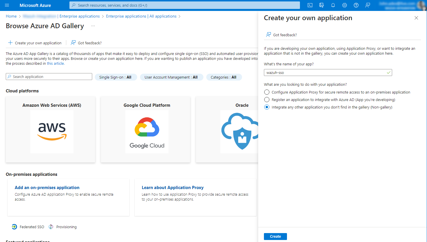 Select Integrate any other application you don't find in the gallery. Give a name to your application and click Add. In our case, we name this application