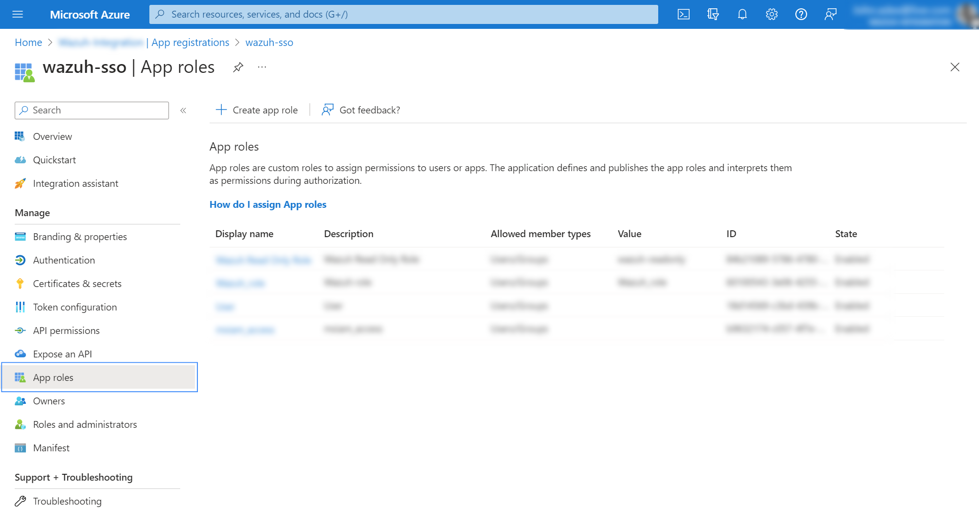 Select your new app under All applications and click App roles.
