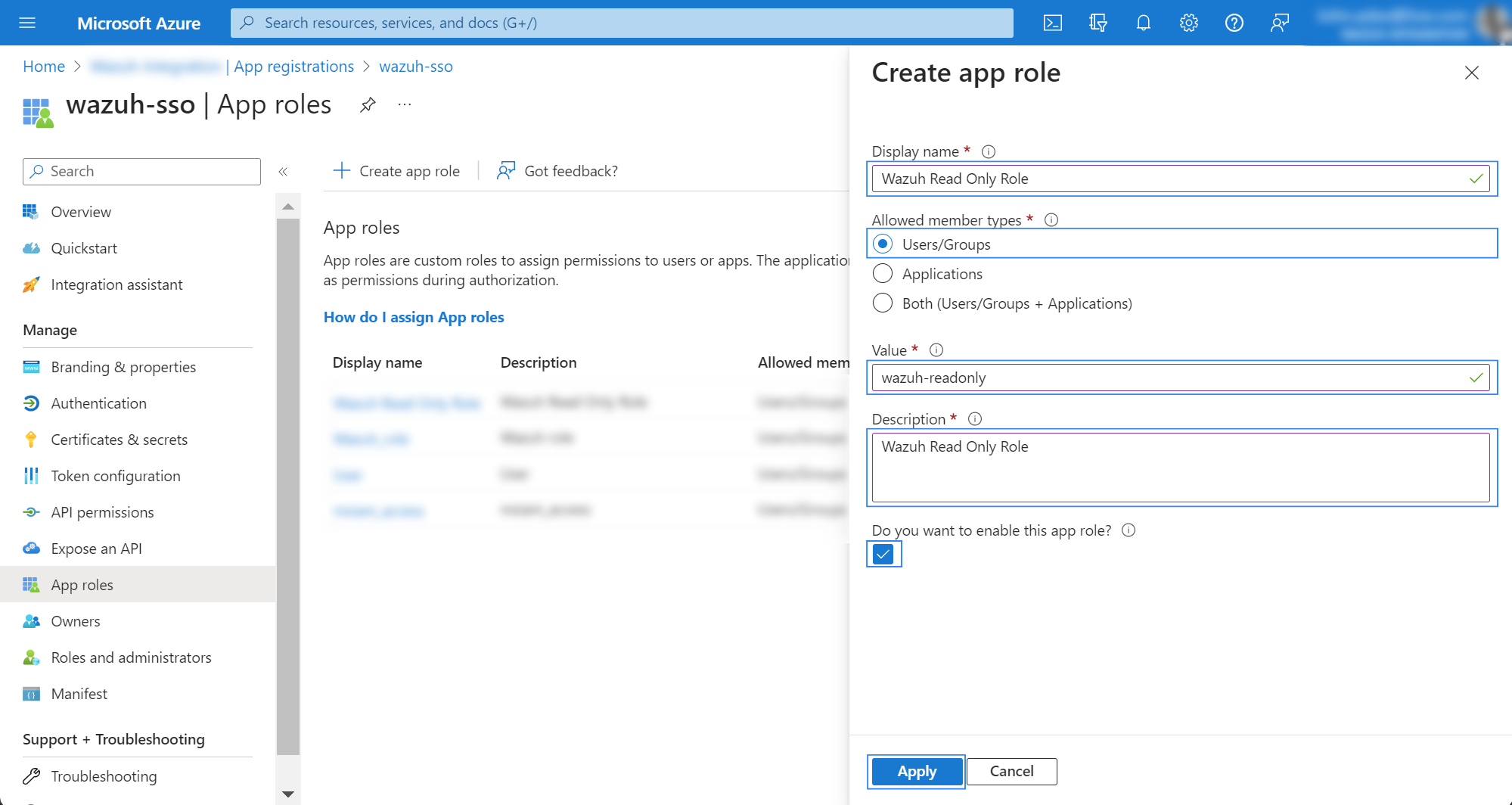 Wazuh Read Only Role.Do you want to enable this app role: Click on the checkmark to enable the role.