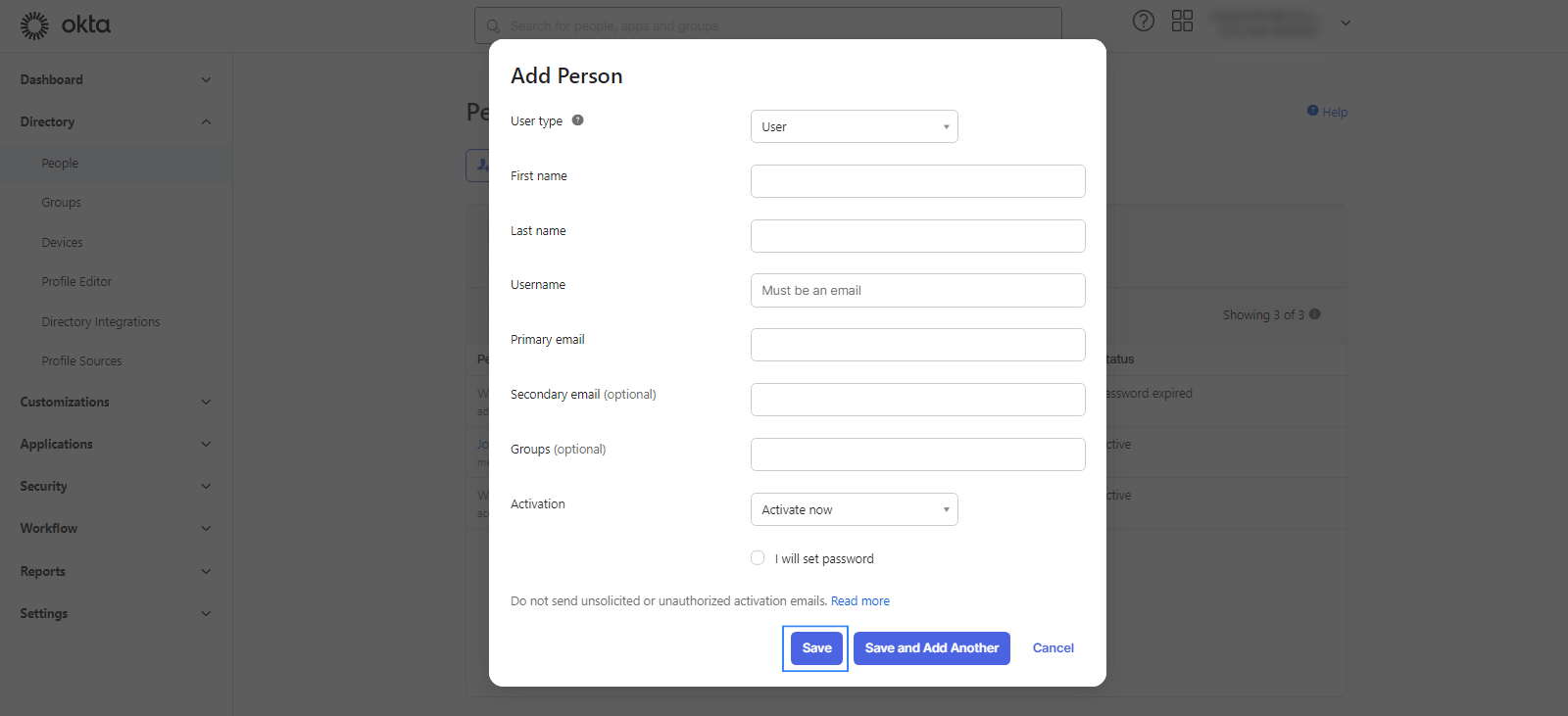 From the People section, select Add Person, fill in the details of the new user, and click Save as seen in the following screenshots.