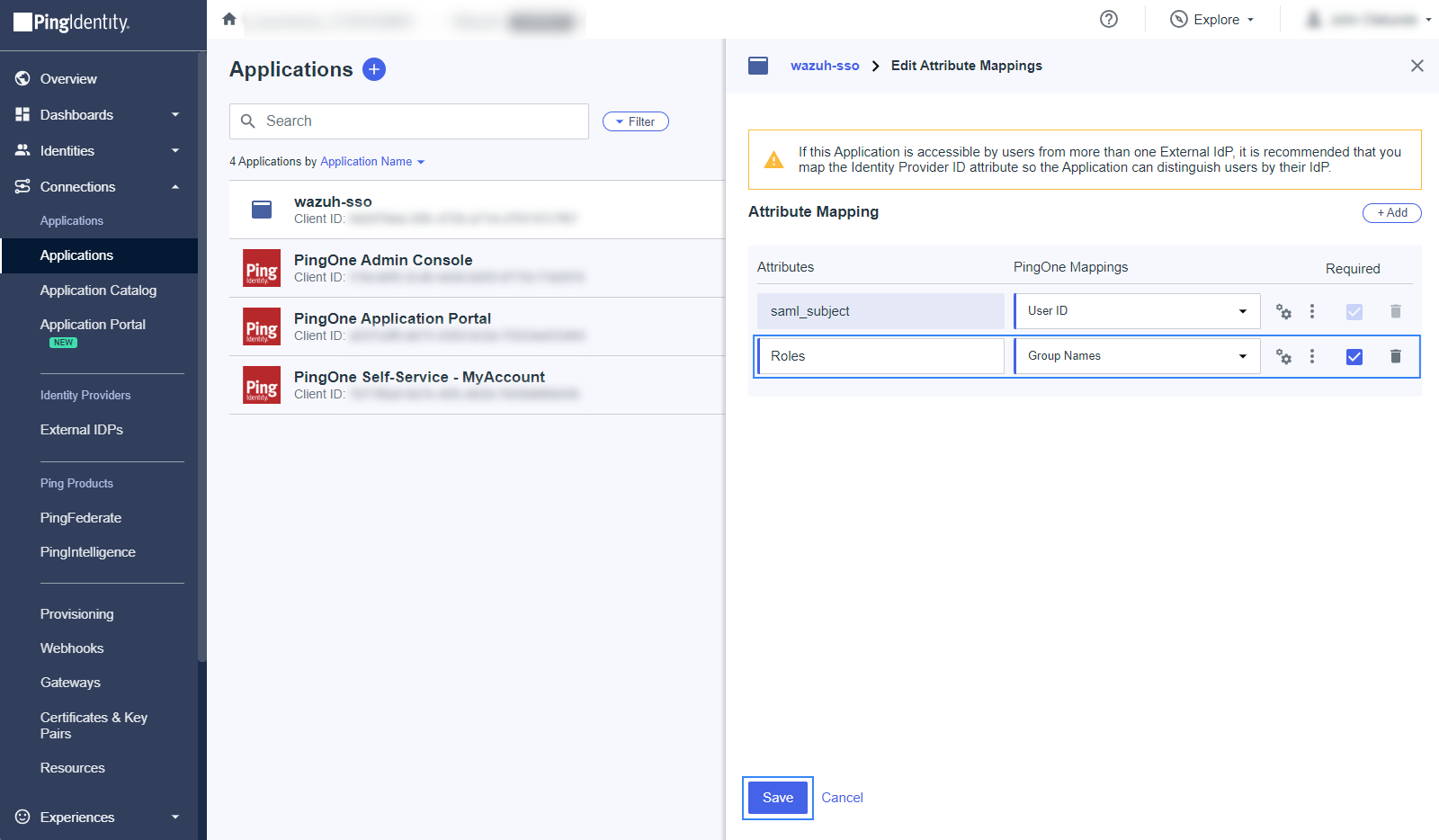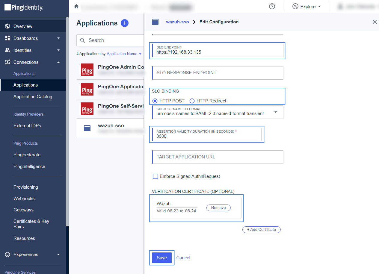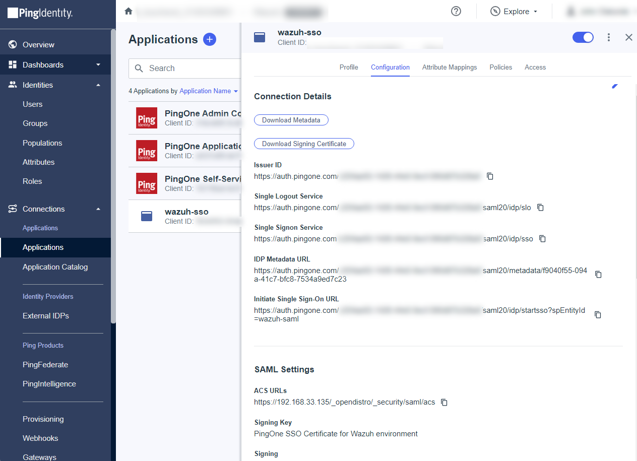 PingOne for Enterprise is an identity-as-a-service (IDaaS) and single sign-on (SSO) platform. It allows enterprises to give their users federated access to applications. In this guide, we integrate the PingOne IdP to authenticate users into the Wazuh platform.